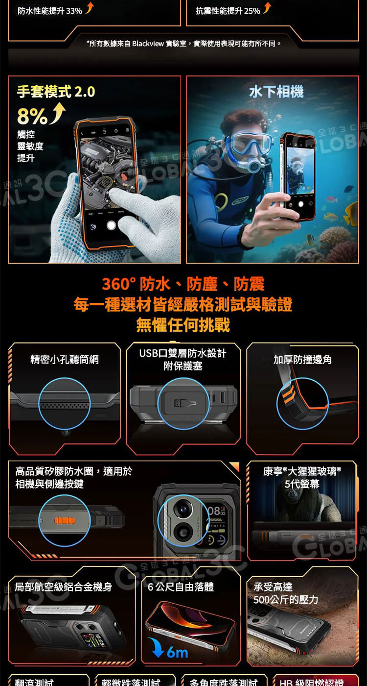 ➤符合 IP68、IP69K 以及 MIL-STD-810H 防護標準,具備防水、防塵與抗震能力