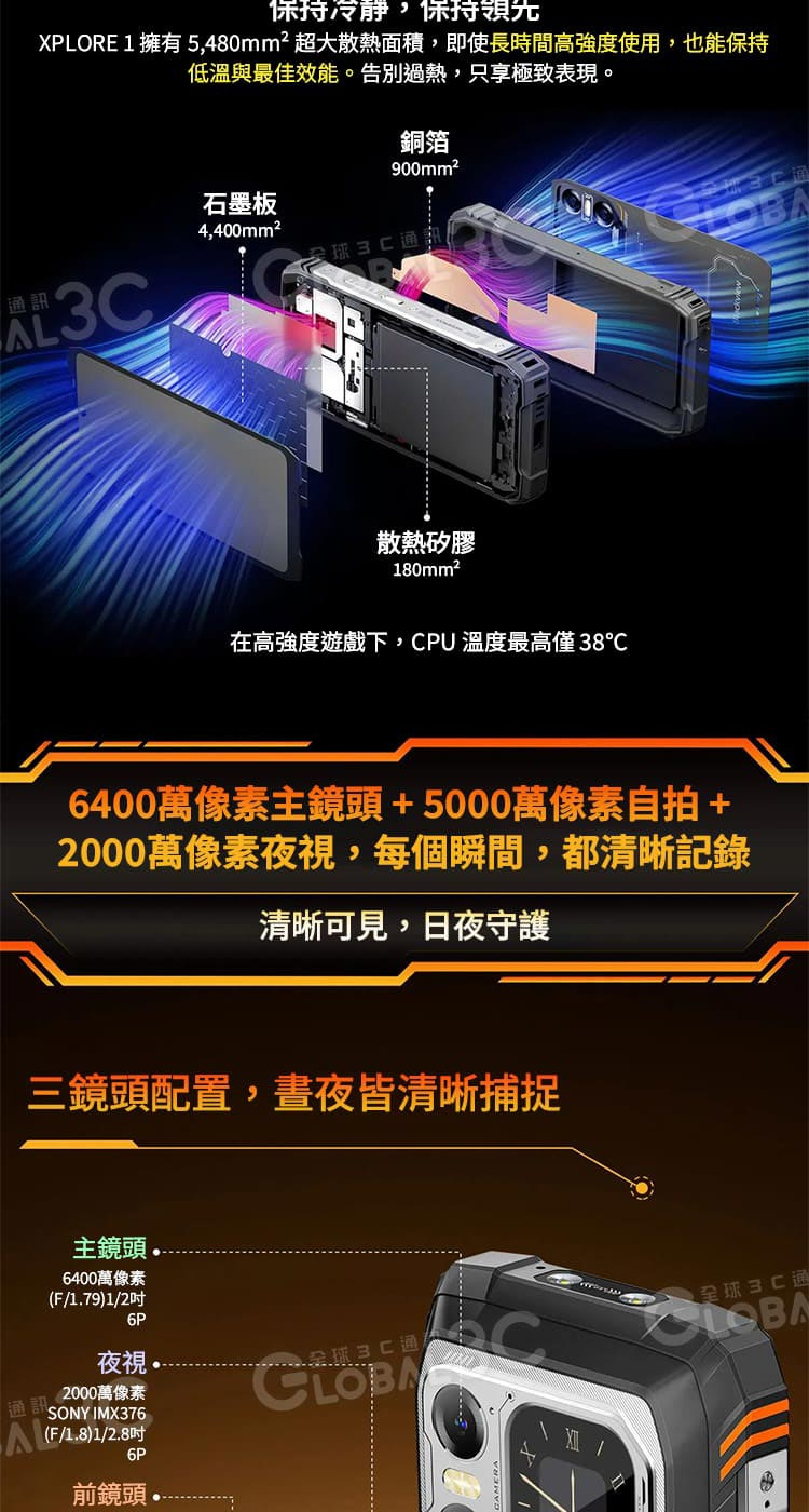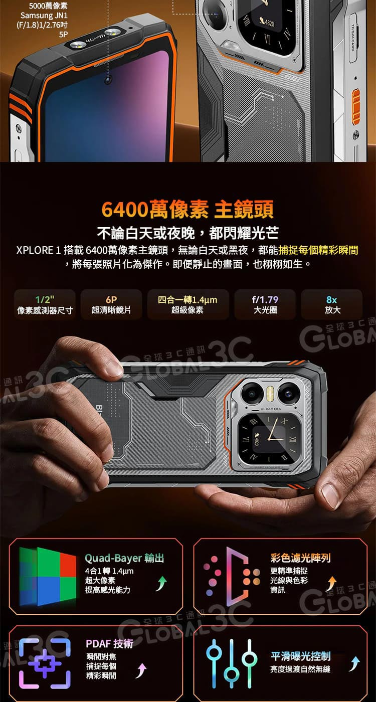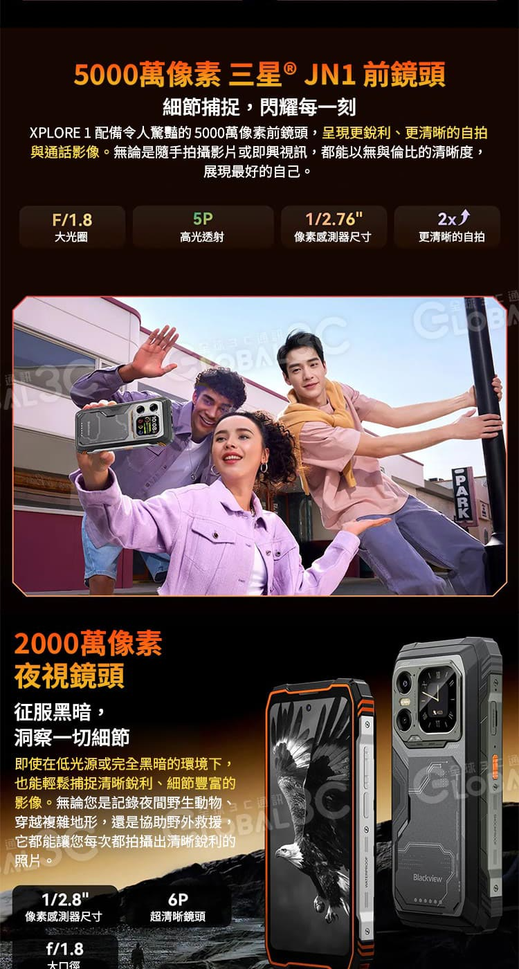 後鏡頭 : 6400萬像素主鏡頭+2000萬像素夜視