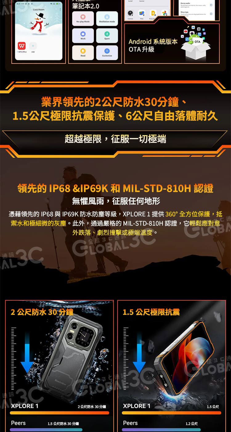 堅固等級 : IP68、IP69K 和 MIL-STD-810H