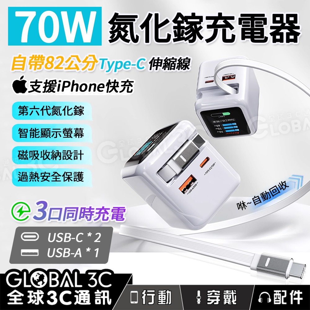 ⚡自帶82cm伸縮線,磁吸收納好便利