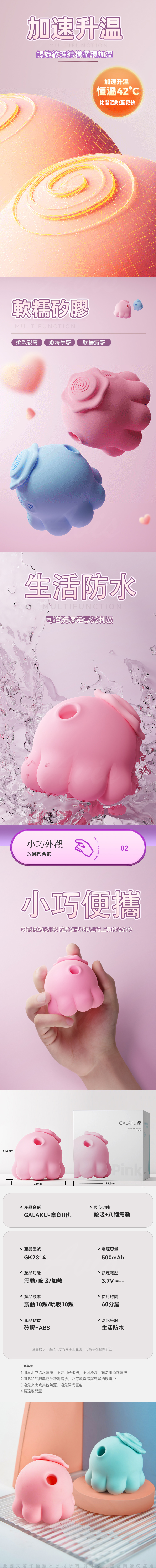 產品名稱:GALAKU|元氣章魚2代|吸吮震動跳蛋