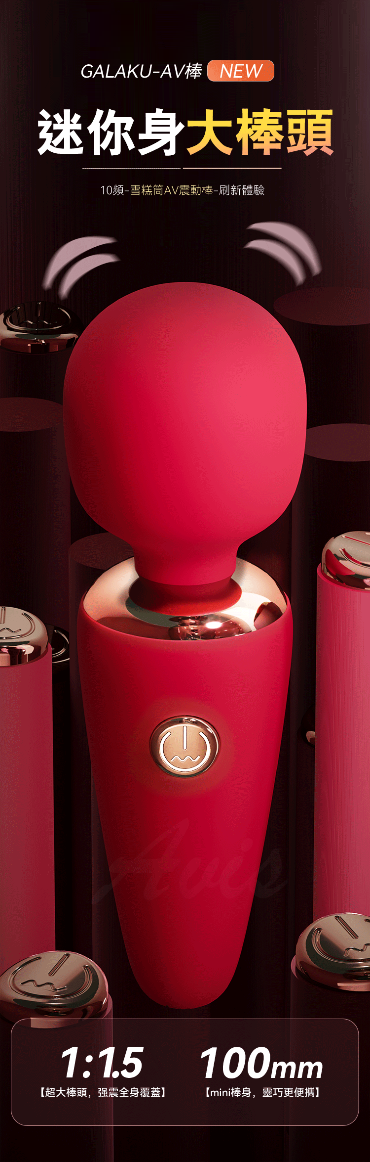迷你身大棒頭,10頻-雪糕筒AV震動棒-刷新體驗,久握不麻手、強 震高覆蓋、輕巧易攜帶;棒頭細膩矽膠,柔軟舒適;61MM大直徑, 強震全覆蓋,強制高潮讓TA一按求饒 覆蓋面更大同時激發片唇,陰 蒂兩種快感; 10頻強震,經典3+7模式,任君調情。