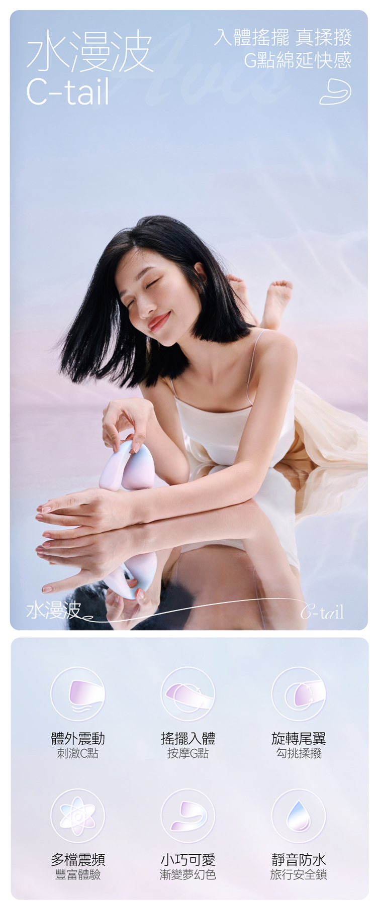 體外震動,刺激C點;搖擺入體,按摩G點;旋轉尾翼,勾挑揉撥。多檔震頻,帶來豐富體驗。小巧可愛,漸變夢幻色。靜音防水,旅行安全鎖。