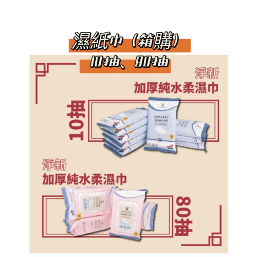 【商品規格】 名稱:加厚純水柔濕巾80抽 成分:不織布、純水 抽數:80抽 尺寸:21*10*6.5cm 保存期限:三年 製造日期:標示於包裝上 製造產地:中國(台灣監製) 進口商:淨新科技股份有限公司 保存方法:請置放於陰涼處,避免高溫或陽光直射 蝦店一單上限1箱 不加其他商品 名稱:加厚純水柔濕巾10抽 成分:不織布、純水 抽數:10抽 尺寸:15.5*9*2cm 保存期限:三年 製造日期:標示於包裝上 製造產地:中國(台灣監製) 進口商:淨新科技股份有限公司 保存方法:請置放於陰涼處,避免高 溫或陽光直射 50小包是散裝 【商品特色】 1.淨新公司正版貨,非盜版仿冒品,就是要讓您用得安心。 2.攜帶方便,讓您可隨時隨地清潔您與小寶貝的手,媽媽包包內必備小物! 📣📣賣場公告-買家權益請詳閱📣📣 賣場出貨全程錄影 1.訂單金額滿99元以上即可出貨(消費金額不含運費) 2.本賣場已全面改用電子發票 ,請掃描QRCode來查看發票、歸戶或開立三聯發票。 📌需打統編及公司抬頭請於按下「完成訂單」後【72小時內】進行修改,逾期將自動開立二聯式發票。如您是開立三聯發票,需等加值中心上傳至財政部後才能下載PDF檔案詳情操作請看主頁教學。 3.能點選下單的商品90%皆有現貨,但每天下單數量太多,蝦皮庫存並非實際庫存量,如需數量過多,可聊聊詢問(問:何種商品/規格/所需數量)確認 4-1.⚠️超商運送限5kg ⚠️ 超商取貨尺寸 長寬高三邊總和≦105cm,最長邊≦45cm (超過此重量、下單商品品項多、尺寸過大請選宅配或者分開下單) 4-2.⚠️店到店運送限10kg ⚠️ 店到店取貨尺寸 長寬高三邊總和≦105cm,最長邊≦45cm (超過此重量、下單商品品項多、尺寸過大請選宅配或者分開下單) 下標後發現過重,直接略過取消訂單 4-3.⚠️國內郵寄運送限20kg ⚠️ 外島如需增加需另收運費,超過5公斤要125起跳 超商取貨尺寸 長寬高三邊總和≦150cm,最長邊≦45cm (超過此重量、下單商品品項多、尺寸過大請選宅配或者分開下單) 下標後發現過重,直接略過取消訂單 4-4.⚠️郵寄/宅配免運 ⚠️ 符合本店郵寄/宅配免運免運資格者,單筆訂單上限【1箱包裹免運】若訂單內容體積較大需分散包裹,則會通知買家共分裝幾箱,需另補上包裹運費。EX:下單宅配/郵政,符合免運者,一張訂單需分兩個包裹,其中一箱包裹運費由本賣場優待,另一筆包裹的運費則需由買家再補上。 4-4.1部分商品本身就是箱購,例如一箱衛生紙、影印紙、濕紙巾等,指類型商品和其他商品下單無法合併就會分裝包裹 【外島郵寄】外島買家統一只能選擇郵寄,並加收運費,外島郵寄運費依郵政公布運費為準,收到外島郵政訂單時會通知買家補上運費的差額 5.❌不接急單,依照訂單順序出貨(急用者請自行至其他實體店面購買) 『如有急需,請先透過聊聊確認是否符合您的等待時間/非現貨商品、購買商品規格、數量、尺寸等等問題🙏』 6.賣場商品均為網路現金優惠價,如需「大量」出貨價格可詳談。(少量勿擾) 7.收到問題商品,請第一時間提供照片並私訊聊聊告知!我們將積極與您聯繫。 也感謝您的體諒與建議,讓我們有繼續經營、進步的動力,請勿用評價溝通,感謝您的購買。 8.週六週日(國定假日)休假不出貨(訊息會回覆) 9.網拍與實體店面各為獨立系統,門市所需服務成本為重。勿直接至門市要以網路售價購買! 10.出貨規則如下 現貨:盡量在3個工作天內寄出 非現貨(大量) 預訂貨約5-10個工作天 11.本賣場只接受退貨,不接受換貨,並請於收到商品未按「完成訂單」之前提出(退貨需完整原包裝寄回) 12.以上,可以接受再下單,感謝。
