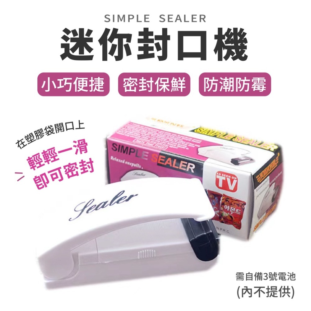 品名:迷你封口機 尺寸:10*3.8*4cm 材質:ABS塑料 用電規格:3號電池2顆(需自備) 【操作】 1.打開電池盒,安裝2顆3號電池 2.翻開黑色的防燙保護蓋,勿觸碰金屬頭 3.先預熱5秒後,夾上塑膠袋開口,緩緩順過同一方向去,即可完成密封 4.確認袋口是否完全密合,不用時也記得拔掉電池,較為安全喔!