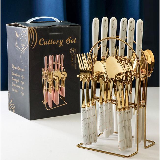 現貨 不鏽鋼餐具24件套裝 西餐牛排叉 不鏽鋼西餐具 小勺子 叉子 西餐餐具架 禮盒套裝產品 不鏽鋼餐具組 24件組