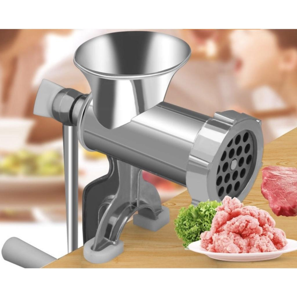 手動絞肉機 商品介紹 在家也能輕鬆灌香腸、做絞肉製作食材 長把手設計 讓您在使用時更輕鬆 辣椒、蘿蔔、絞肉等等的 都能輕鬆絞碎 是廚房必備的好物之一! 材質:鋁合金 商品尺寸如照片所示 產品保養存放方法: 使用完畢後將機子用洗潔精加開水或溫水用抹布清洗乾淨,如果是加工加鹽醃製的食物,請務必用完就立即清洗,清洗完以後擦乾水分。晾乾後擦上食用油,不然會生鏽。存放在乾燥處就可以。 使用說明: 1.使用絞肉機時,先將絞肉器用水洗淨,再按原樣裝好,壓緊大壓蓋後才可使用。 2.使用前,要將絞肉機固定在案板或者板凳上面,可裝夾的厚度約5cm,將絞肉機底部的手旋緊固螺釘擰緊,夾緊案板,固定好。 使用小竅門: 1。主要的就是放料的時候盡量少放一些,放的多絞起來會很累; 2。特別是絞肉,有時候會被卡住了,這時候手柄往後轉幾圈即可; 3。在使用前,推進軸後端與塑料套之間請加入少量食用油,這樣用起來比較輕鬆; 4。機械類產品次使用前一定要用熱水加洗潔精內外清洗乾淨。 購 物 需 知 1.本賣場大多為現貨商品,急用者請先使用聊聊詢問現貨狀況,現貨商品依訂單順序約2-3個工作天會安排寄出 2.出貨地為台灣本島 3.商品寄出後,超商到貨天數約2-3天,宅配約1-2天 (如遇連假,物流部分較無法掌控,可能會順延幾天,實際到貨狀況還是要以貨運為主) 4.如遇商品體積過大無法超取,需請買家配合更改寄送方式 5.本賣場商品鑑賞期為2天,鑑賞期非試用期,鑑賞期間如遇商品問題或瑕疵,請於本賣場溝通協調(瑕疵定義:破損嚴重導致無法正常使用。色差與個人觀感不影響使用功能不列為瑕疵),要求完美主義者煩請繞道,謝謝! 6.線上快速諮詢,有任何問題歡迎詢問,善用聊聊,有專人在線為您服務。 7.如收到產品時發現產品異常,請拍商品照片和貨單,傳至聊聊,客服人員上班時間會馬上為您處理服,務時間:週一~週五 08:30~17:30 8.本賣場合法開立電子發票‧發票均由蝦皮代開,蝦皮代開發票,發票如需開立統編抬頭,請結帳前,務必填寫完整。 9.請勿在聊聊和訂單備註顏色款式,下單前請確認顏色款式,並下單正確。