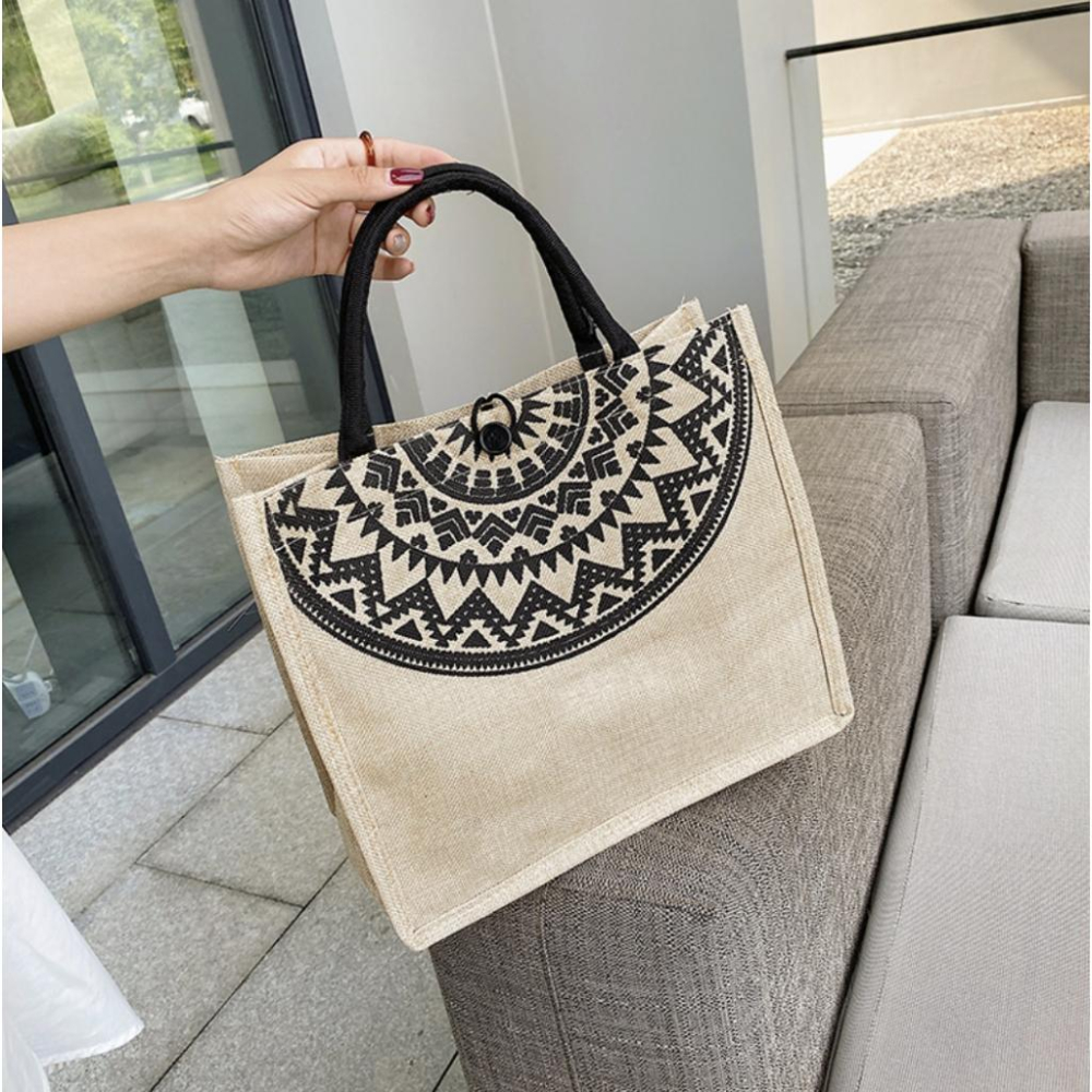 現貨 復古 民族風 圖騰 亞麻 通勤 萬用包 手提包 簡約 休閒 大容量包