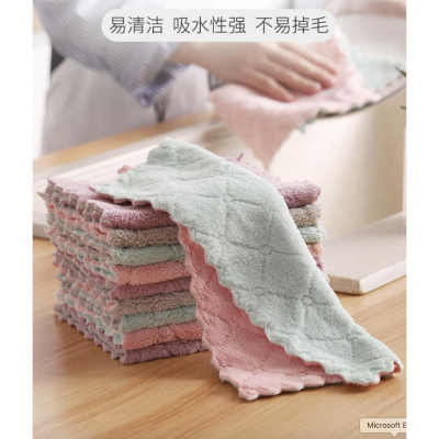 現貨 珊瑚絨抹布 不沾油 不掉毛 超細纖維 珊瑚絨 菱格紋 洗碗布 擦手巾 毛巾 抹布 洗車布