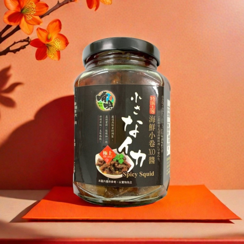 成份:小饒魚、蝦米、蝦皮、干貝、油蔥酥(紅蔥頭、棕櫚油、小麥麩皮)、蒜酥(蒜頭、棕櫚油、小麥麩皮)、大豆油、辣豆瓣醬(黃豆(非基改)、辣椒、米、麻油、味素)、糖、鹽、辣紅油(大豆油、辣椒粉、辣椒萃取物、糖、鹽)