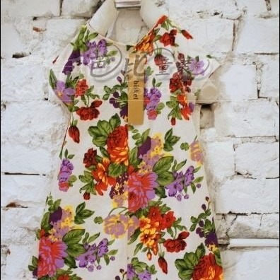 特 色:很有異國風味的一款洋裝,滿版都是大大的花朵,很鮮豔大方,單穿再搭一頂大圓帽很好看喔,或者內搭一件襯裙也是超美的喔...