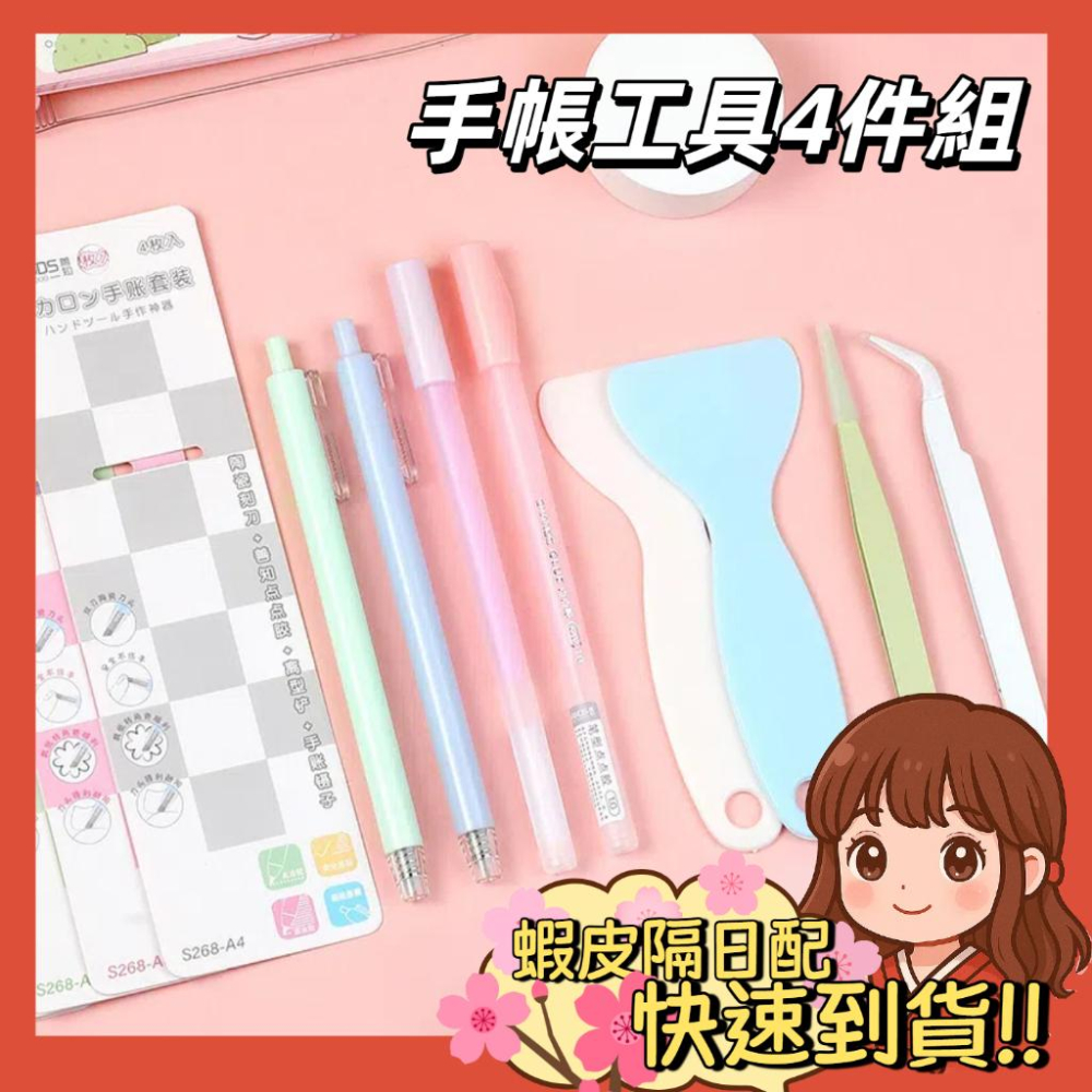 【小薰選品】台灣現貨 手帳工具四件組 點點膠 陶瓷刻刀 刮刀 推平鏟 鏟子鑷子 工具組 初學者套裝 DIY工具組