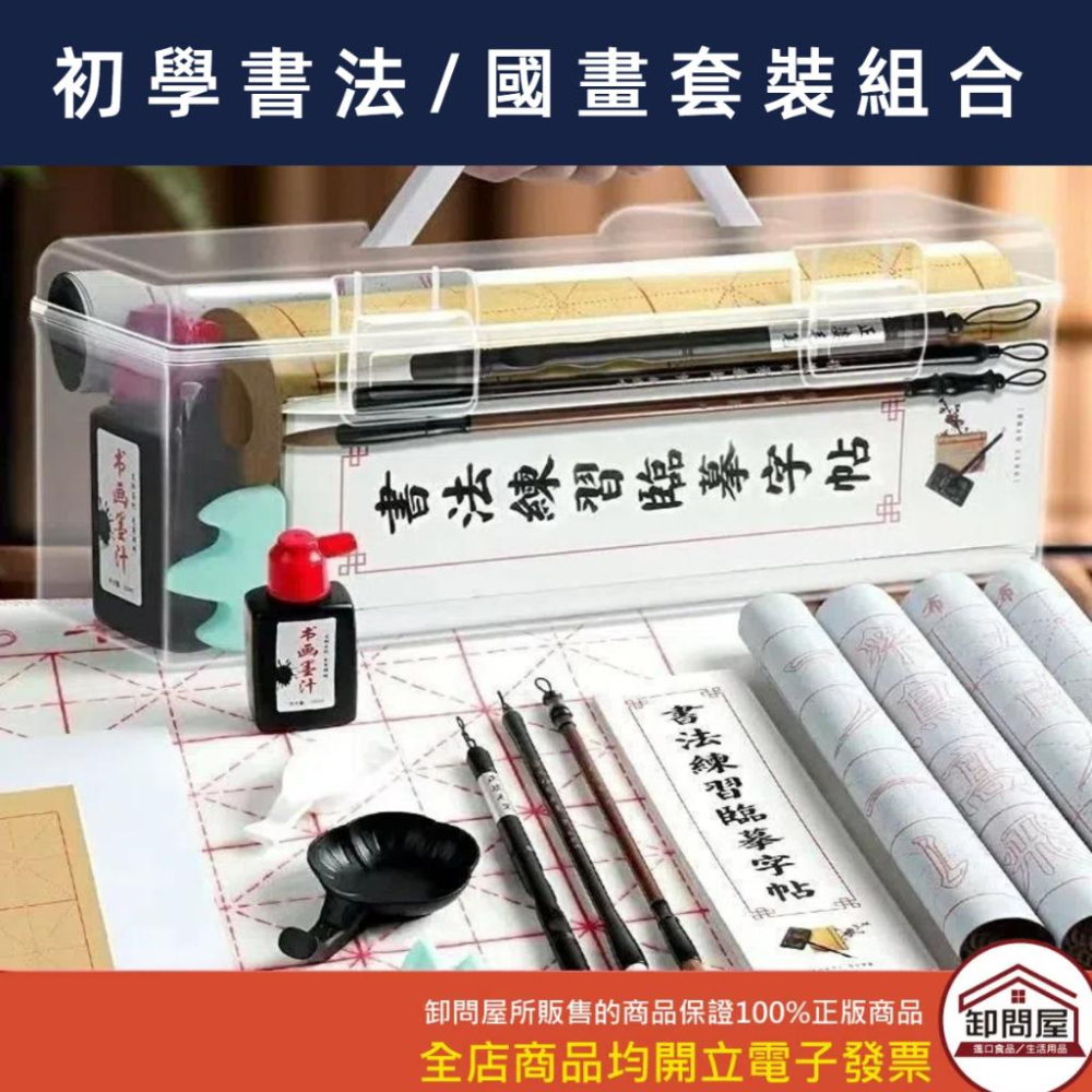台灣 文房四寶 書法 套裝組 毛筆 宣紙 毛氈 毛邊紙 毛筆 正姿毛筆 水寫布 臨摹字帖 墨汁 收納盒組