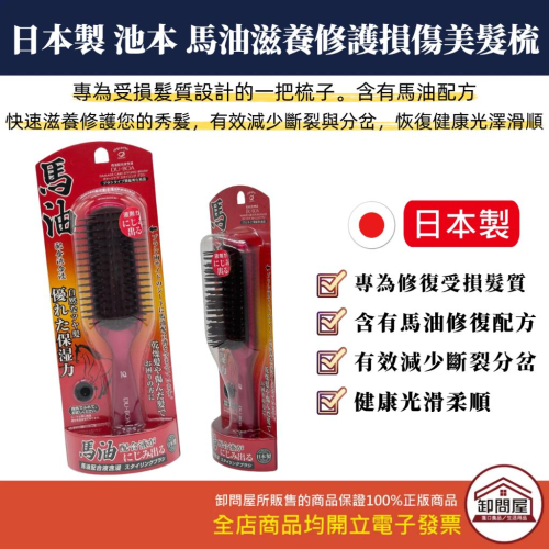 日本製 日本 池本刷子 IKEMOTO 馬油護髮梳 BY-1060 修復受損 髮梳 損傷修護髮 半圓梳 梳子