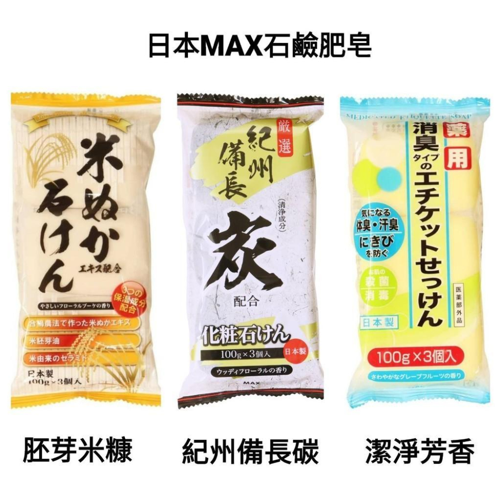 日本 MAX 消臭 胚芽米糠 紀州備長炭 石鹼肥皂 3入 沐浴皂 香皂 肥皂