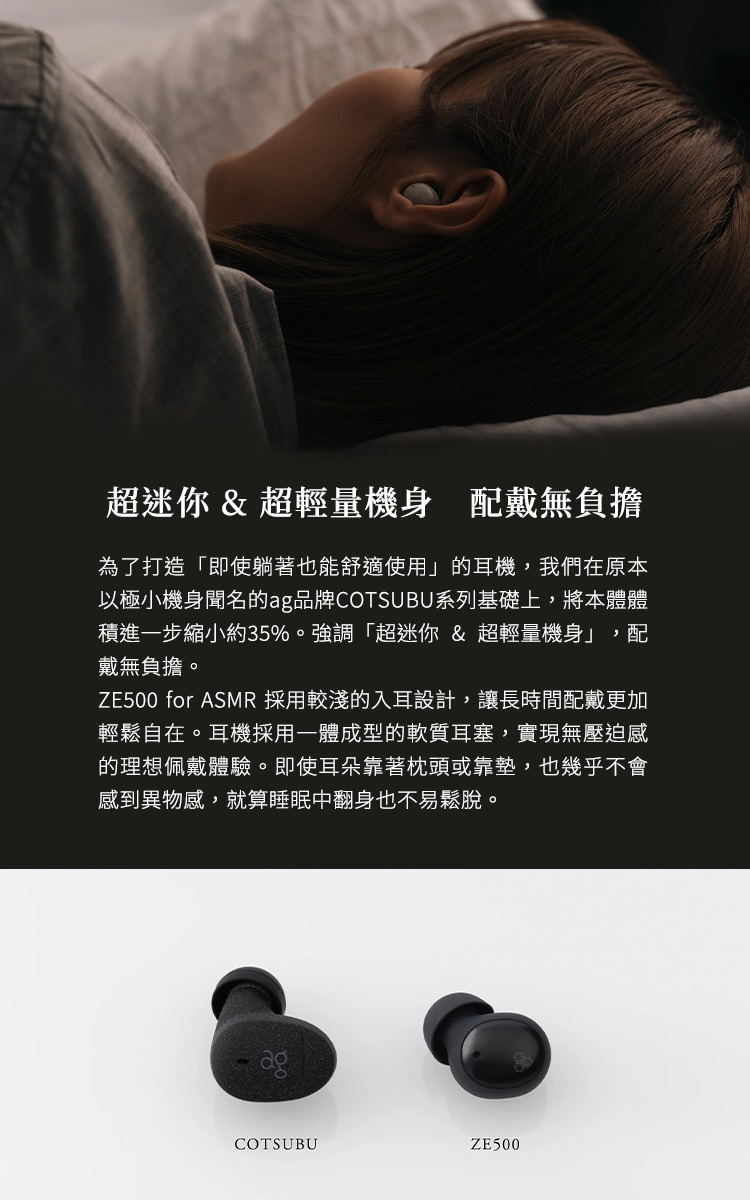 「ZE500 for ASMR」不僅是入睡時適合,也適合收聽廣播或有聲書電子書等長時間的語音內容,都可讓您進入沈浸式聆聽體驗,是您不可錯過的真無線藍牙耳機之選,敬請把握這次機會,好好體驗全新層次的聲音沉浸感!