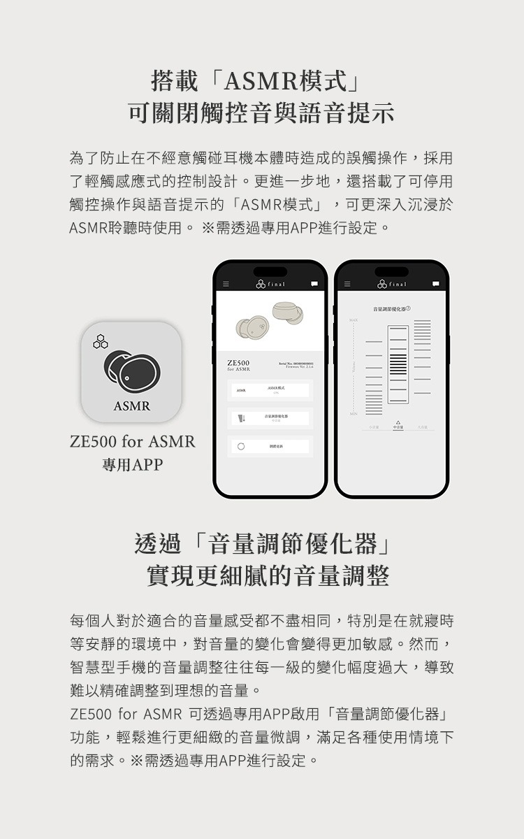 採用 final 音響研究技術,專為聆聽ASMR進行的最佳化設計