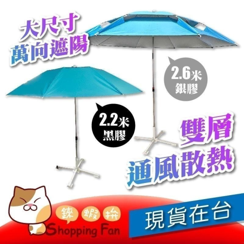 萬向座2.2米黑膠 / 2.6米銀膠通風遮陽傘 超大面遮陽傘 釣魚傘 野餐 雨傘 (傘座需另購)