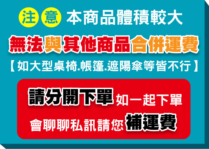 8. 本商品【❌無法和其他大型物品.如桌子.椅子.帳篷.遮陽傘等合併寄送❌】.請分開下單.如一起下單會聊聊私訊請您補運費