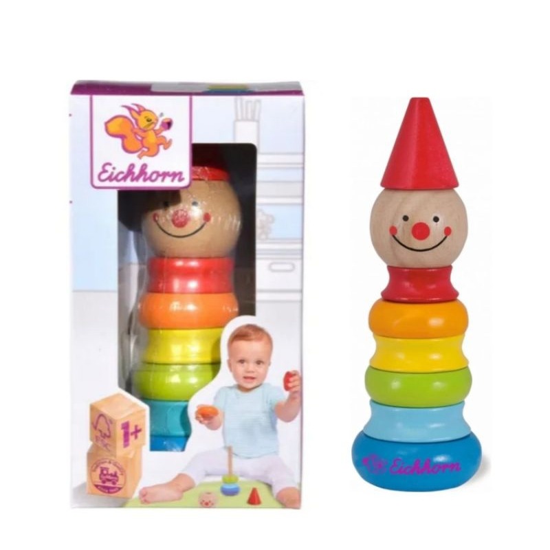 堅固的木環形狀各異,並塗上鮮豔的色彩。當玩這個堆疊玩偶時,