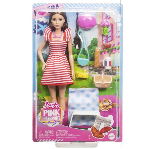 芭比擁有那種難以言喻的魅力!她已經準備好帶著這款粉紅護照娃娃套裝在巴黎野餐了。