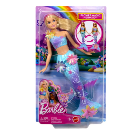 與芭比花魔法美人魚娃娃一起享受樂趣吧!滑動她背上的槓桿,就能看到花朵從她的衣服上神奇地“綻放”,一次又一次!孩子們可以欣賞美麗的花朵。這個芭比美人魚娃娃有著彩虹色的花朵、漸變色的魚尾和珍珠頭帶配飾,她那華麗的金色長髮上點綴著粉紅色的亮點,就像海底花園一樣迷人。娃娃不能獨自站立或游泳。顏色和裝飾可能會有所不同。