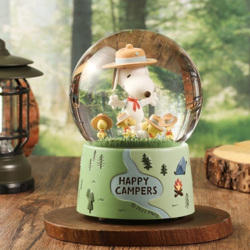 【限時6折售完即絕版JARLL 讚爾藝術】Snoopy史努比 露營趣 水晶球音樂盒 官方授權