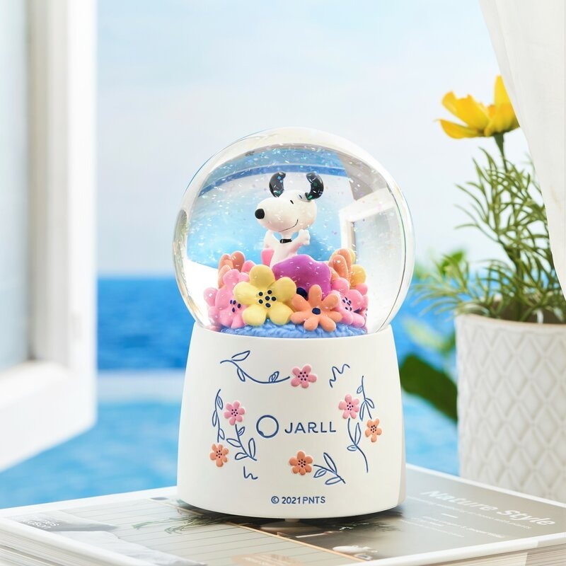 【JARLL 讚爾藝術】Snoopy史努比百花齊放 水晶球音樂盒 禮物