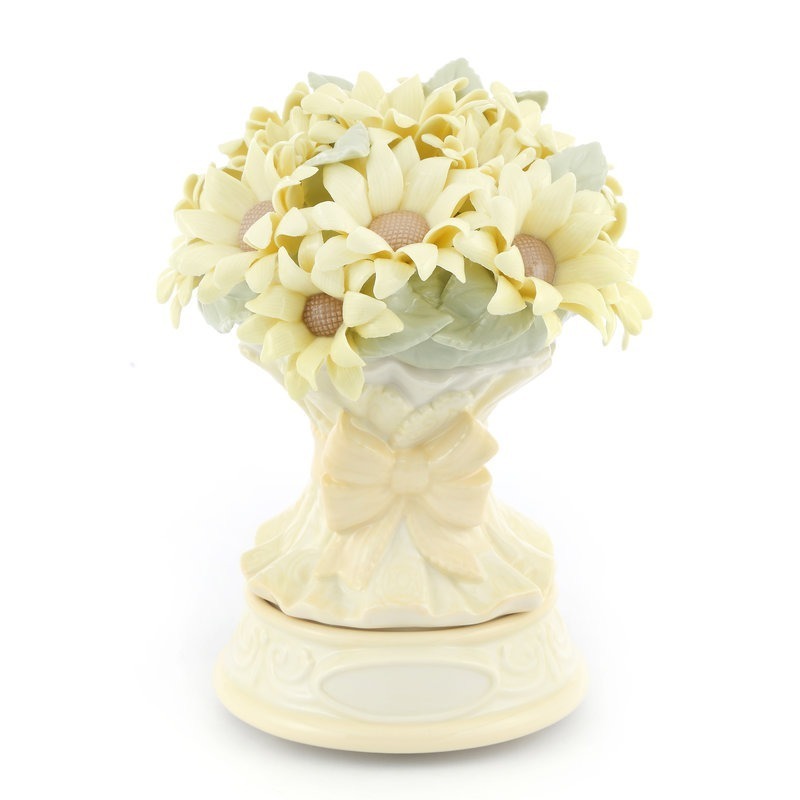 名稱: 向日葵花語-勇敢追愛 音樂盒 貨號: FG1902-EB 材質: 陶瓷 功能: 旋轉 音樂 尺寸: 14.2X13.8X18.5CM 音樂鈴: La Vie En Rose