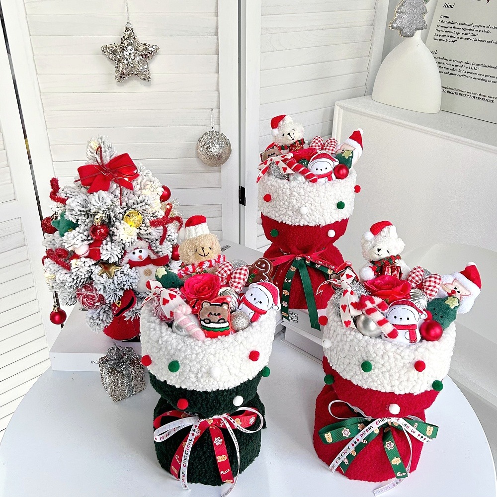 【台灣現貨】聖誕公仔花束 小熊花束 玩偶花束 成品(聖誕禮物 發光禮物 交換禮物 畢業禮物)
