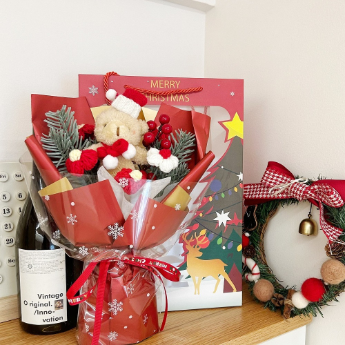 【台灣現貨】創意聖誕針織 玩偶花束 小熊花束(聖誕禮物 發光禮物 交換禮物 畢業禮物)