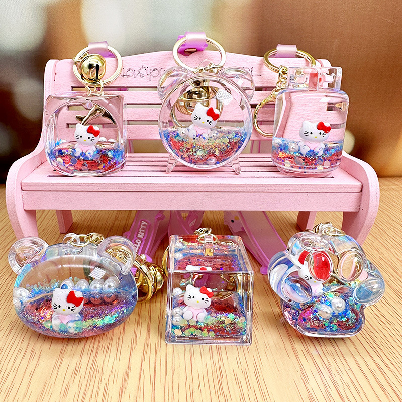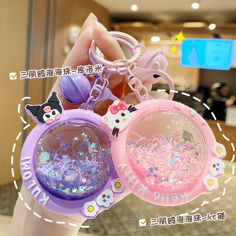 【現貨當天寄出】人魚姬入油流沙鑰匙扣女精緻鬧鐘貓爪熊頭閨蜜情侶配飾包包掛件 舒壓 減壓掛件