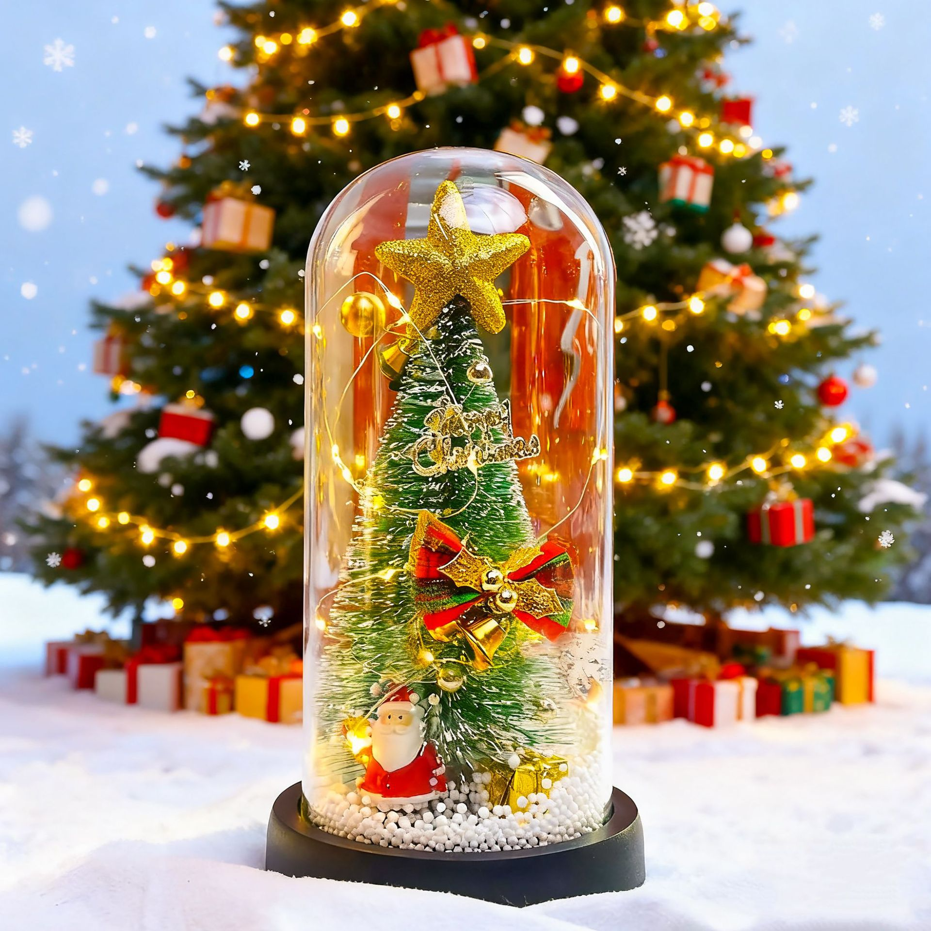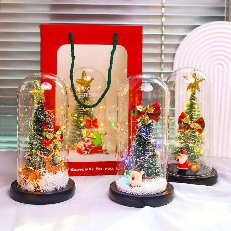 【現貨秒出】 聖誕節 禮物 玻璃罩 聖誕樹 裝飾 桌面 小擺件 LED燈 發光