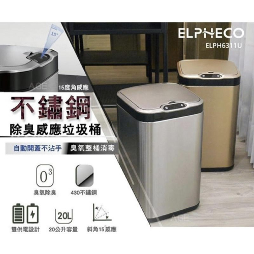 ⭐️領卷再折⭐️免運 可刷卡 美國ELPHECO 不鏽鋼除臭感應垃圾桶 ELPH6311U