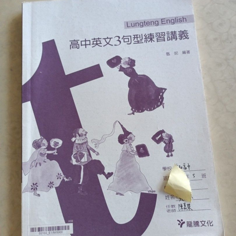 二手高中英文 3 句型練習講義,龍騰文化,封面有書寫姓名,內頁有筆記。