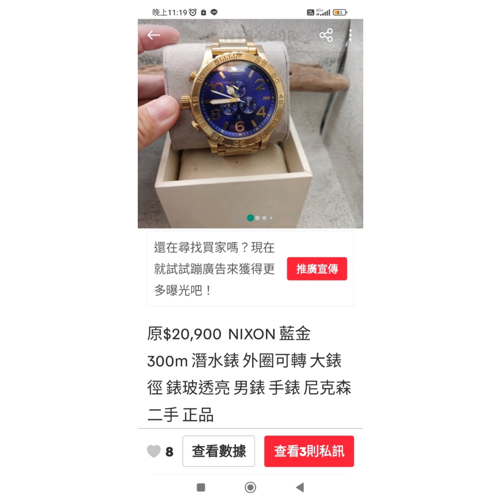 原$20,900 NIXON 藍金 300m 潛水錶 外圈可轉 大錶徑 錶玻透亮 男錶 手錶 尼克森 二手 正品
