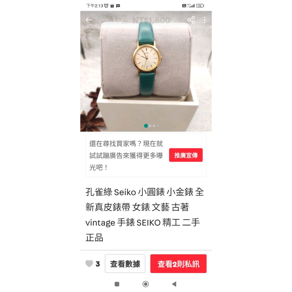 孔雀綠 Seiko 小圓錶 小金錶 全新真皮錶帶 女錶 文藝 古著 vintage 手錶 SEIKO 精工 二手 正品