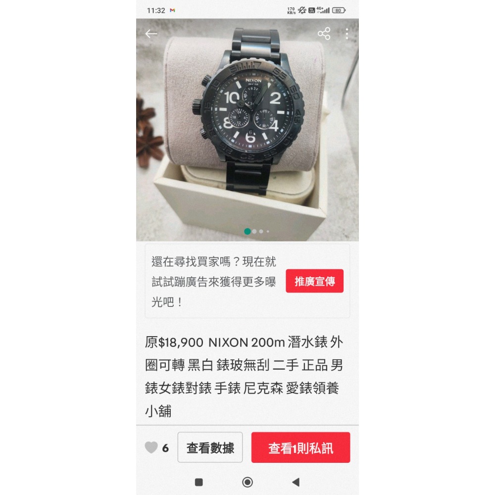 原$18,900 NIXON 200m 潛水錶 外圈可轉 黑白 錶玻無刮 二手 正品 男錶女錶對錶 手錶 尼克森 愛錶領養小舖