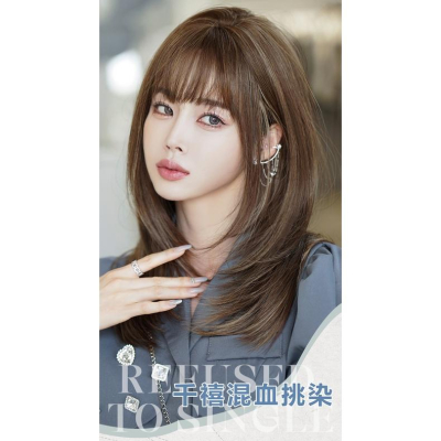 挑染新款 川崎家假髮 53CM主播系網紅 混血挑染 內彎 層次羽毛剪 中長髮 鎖骨捲 全頂髮套