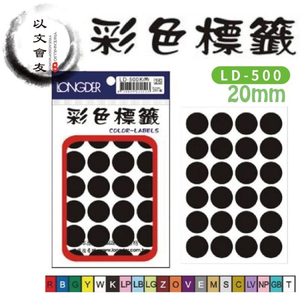 龍德 LD-500 彩色標籤圓點20mm (20色可選)