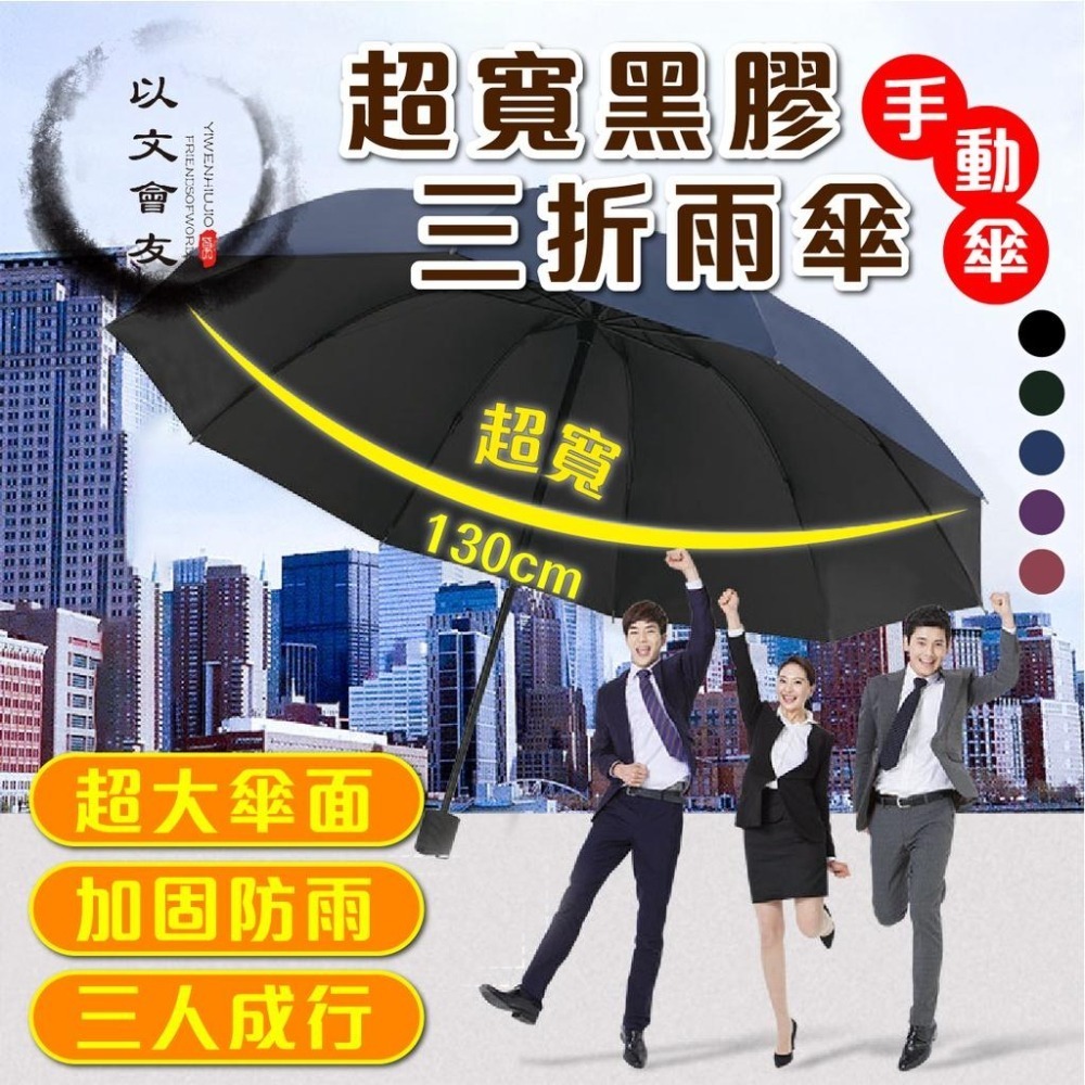 雨傘 手動摺疊傘 超大號 直徑130公分 三人傘 10骨三折 黑膠防曬 晴雨兩用