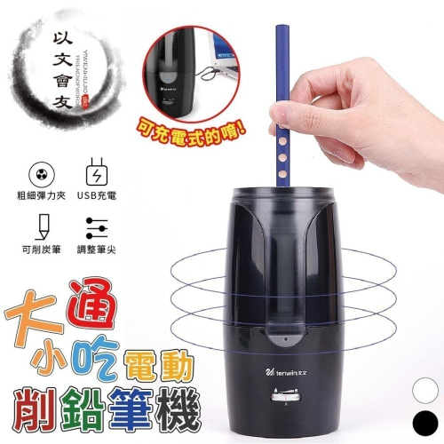 【台灣現貨+保固6個月】 削鉛筆機 tenwin 8028 電動削鉛筆機 半自動 充電式 大小通吃 可調筆尖粗細 雙模組供電 (USB+鋰電池)