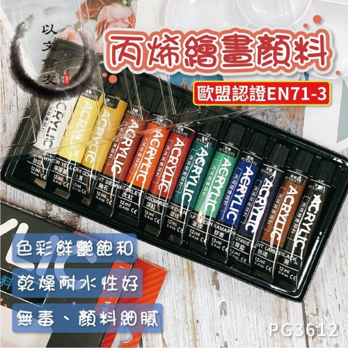 水彩 廣告顏料 筆樂 PG3612 12色 丙烯繪畫顏料 丙烯顏料 壓克力顏料 油畫顏料 壓克力水彩 水彩 無毒 繪畫 廣告 ※歐盟認證EN71-3※