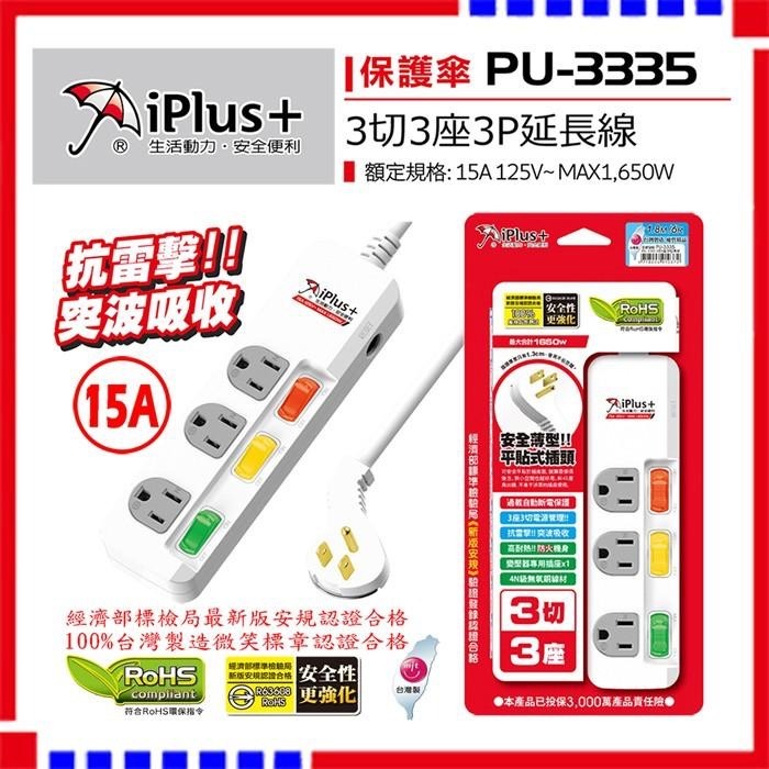 iPlus+ 保護傘 3切3座3P延長線 PU-3335