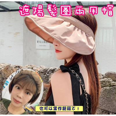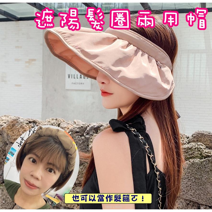 台灣現貨 遮陽髮圈兩用帽 遮陽帽 防曬帽 遮陽兩用帽 髮箍遮陽帽 漁夫帽 遮陽空頂帽 空頂帽 髮箍 海邊遮陽 渡假遮陽