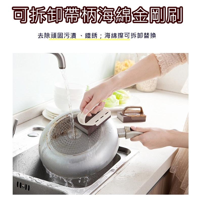 台灣現貨 可拆卸帶柄海綿金剛刷 雙面刷 鋼砂海綿 魔力擦 除鐵鏽垢 刷碗洗鍋 去污神器 鍋底除垢 鍋底刷 帶柄金剛刷