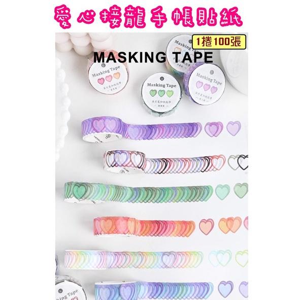 台灣現貨 愛心接龍手帳貼紙 漸層愛心接龍 愛心紙膠帶 連續愛心膠帶 手帳素材 手帳貼紙 紙膠帶 手帳貼紙 一卷100枚