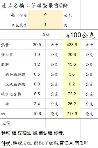 芋頭堅果雪Q餅是一款融合濃郁芋頭香氣與香脆堅果的特色甜點。選用香甜的芋頭味,搭配嚴選堅果,帶來細膩的風味層次。棉花糖的柔滑與餅乾的酥脆巧妙結合,每一口都充滿天然的甜香與堅果的脆口,口感豐富而有深度。