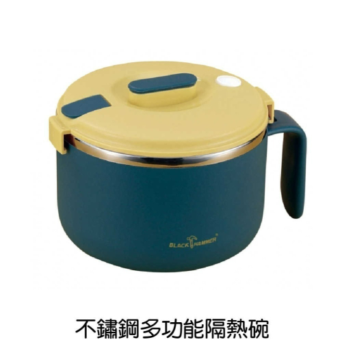 BLACK HAMMER 不鏽鋼 雙層隔熱 多功能泡麵碗1200ml 藍色