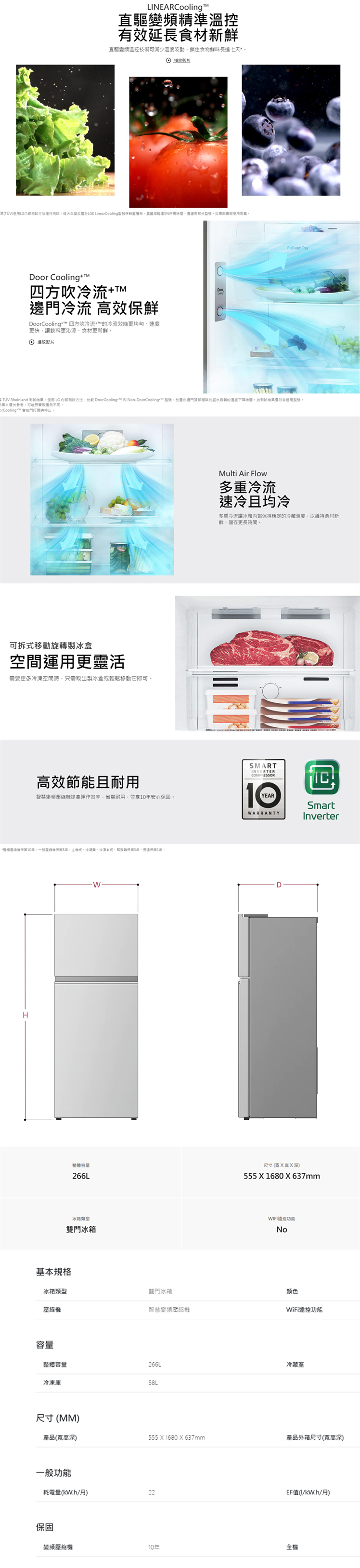 LG 樂金 GV-L266SV 雙門冰箱 266L 智慧變頻 星辰銀